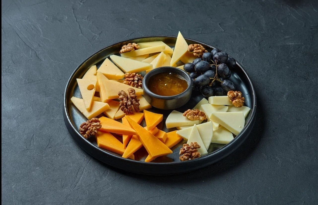 Пармезан, Моцарелла, Чеддер, Маасдам, виноград, мед, грецкий орех.